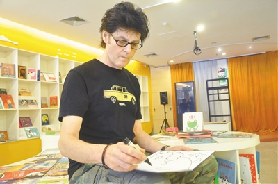 金秋九月的一個下午,建外SOHO蒲蒲蘭繪本館,波蘭繪本作家麥克·格雷涅茨(Michael Gregniec)的簽售現場,家長孩子們人手一本《月亮的味道》,排成了長龍。57歲的麥克身著黑色T恤,是一位面部輪廓分明、頭發烏黑卷曲的老帥哥。他細致地一本本簽名作畫,原本半個小時的簽售時間,延長至1個小時后,長隊依然未見消減。記者約他的專訪,不得不一次次延遲。
