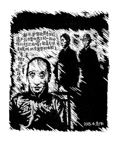 劉春杰說,魯迅先生是中國現(xiàn)代版畫之父,在上世紀30年代,他作為普通作家,舉辦了一次版畫講學班,在不經(jīng)意間為中國的版畫振興譜寫了序曲,也培養(yǎng)出大批中國最優(yōu)秀的藝術(shù)家,留下了非常動人的木刻作品,現(xiàn)在都已成為學習的經(jīng)典作品。反映魯迅的美術(shù)作品、版畫作品很多,研究魯迅的文章也不計其數(shù)。但是作為一個木刻家,同時用自己的筆來寫魯迅、用自己的木刻來表現(xiàn)魯迅,還沒有人做到。在《私想魯迅》中,劉春杰做了嘗試。