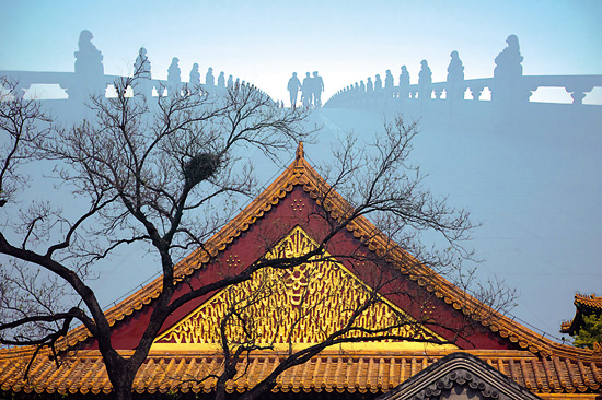 楊建川拍攝《京城記憶》,以北京皇家建筑為主題,俱是已被聯(lián)合國公認(rèn)的世界文化遺產(chǎn),是人類共同享有的文明與文化財富。以影像作為記憶的保存介質(zhì),解釋并證明了文明和文化存在的事實與理由,非懷古之情,非興亡之嘆,日月留痕,磨洗人心。從“建極綏猷”的紫禁城到“敬天法祖”的天壇,從“頤養(yǎng)太和”的頤和園到“邊塞雄關(guān)”的長城,敷影疊像,衍生出意義與象征,詩意哲思,江山社稷。