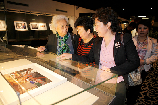 中國世界民族文化交流促進會會長馬小玫觀看《異彩中華·孝和天下》展覽
