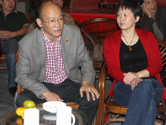 中國影戲副秘書長謝力(右一)聽取當地群眾發言 中國文藝網 韓雪竹攝
