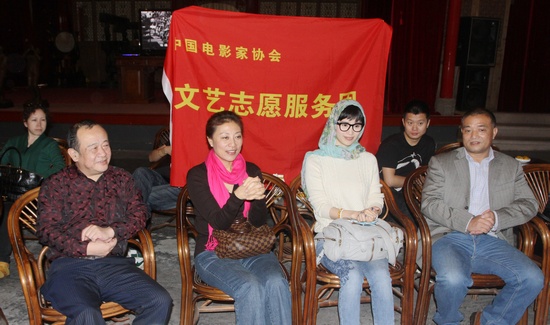 中國影協分黨組書記、駐會副主席康健民(左一)帶領中國影協文藝志愿服務團與當地群眾座談交流 中國文藝網 韓雪竹攝
