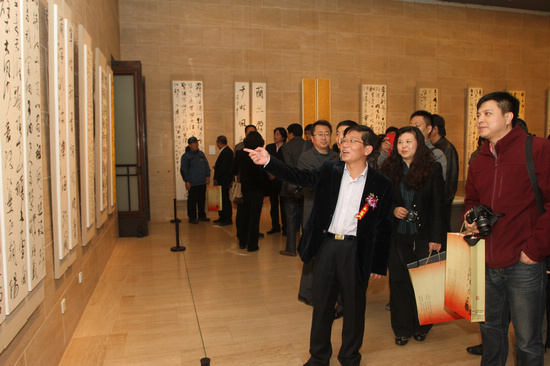 中國石油文聯主席陳明在開幕式上致辭。他說,書法藝術深受百萬石油職工的喜愛,中國石油文聯成立以來,就把弘揚書法藝術作為提高職工家屬的文化素質、豐富職工文化生活的重要內容,涌現出了一批石油書法家,有些書法家在全國書法界有一定知名度,于恩東就是他們中的代表之一。他自己不但潛心書法藝術創作,而且致力于石油書法組織工作和石油書法人才的培養,在組織書法活動和為石油一線員工服務方面都做出了突出成績。