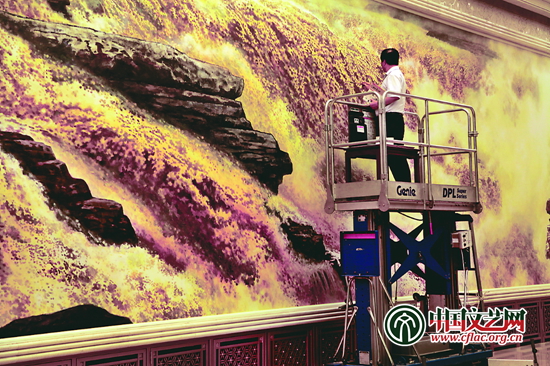 為人民大會(huì)堂繪畫(huà)是非常難的,它是一種綜合性工程,是一種環(huán)境藝術(shù),必須要根據(jù)廳堂環(huán)境,根據(jù)它的實(shí)用功能來(lái)決定最后效果。人民大會(huì)堂的畫(huà),有一些基本要求是必須要遵循的,作品必須要大氣,必須要有相當(dāng)?shù)姆至浚谄渌麍?chǎng)合覺(jué)得好的作品在這兒很可能就不行,就不符合這種追求,這是非常有難度的藝術(shù)創(chuàng)作。所以在人民大會(huì)堂里畫(huà)什么,如何畫(huà),要達(dá)到何種效果,都是非常重要的。我想王西京這張作品一個(gè)非常重要的特征就是能夠體現(xiàn)出我們這個(gè)時(shí)代的氣勢(shì),體現(xiàn)出我們這個(gè)時(shí)代的氣象和我們這個(gè)時(shí)代的精神,把黃河這樣一個(gè)既有歷史氣勢(shì)又有現(xiàn)代氣派的題材畫(huà)得這么豐潤(rùn)、一往無(wú)前,體現(xiàn)了中華民族的崛起,體現(xiàn)了我們對(duì)中國(guó)夢(mèng)的追求,達(dá)到了金色大廳的畫(huà)作所應(yīng)該達(dá)到的藝術(shù)效果。
