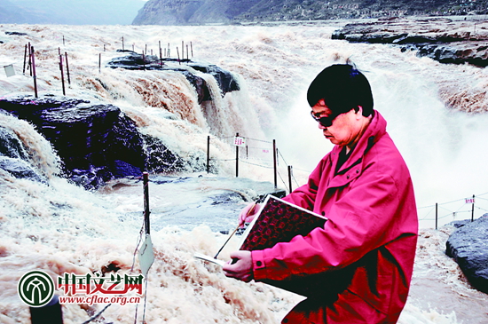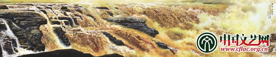李樹(shù)聲(中央美術(shù)學(xué)院教授):他的畫(huà)氣勢(shì)和氣魄都很大,非常壯觀。選擇壺口瀑布這一段來(lái)表現(xiàn)黃河,顯然是經(jīng)過(guò)深思熟慮的,黃河那么長(zhǎng),究竟畫(huà)什么,選擇這個(gè)地方我覺(jué)得很有代表性,因?yàn)辄S河本身是中華民族的象征,集中表現(xiàn)了華夏文明的源遠(yuǎn)流長(zhǎng)和瑰麗氣象,象征著我們中華民族,畫(huà)中有種奔騰向前的氣勢(shì),與我們的時(shí)代非常契合,藝術(shù)表現(xiàn)非常成功。