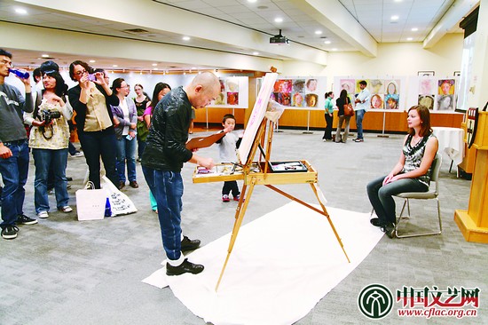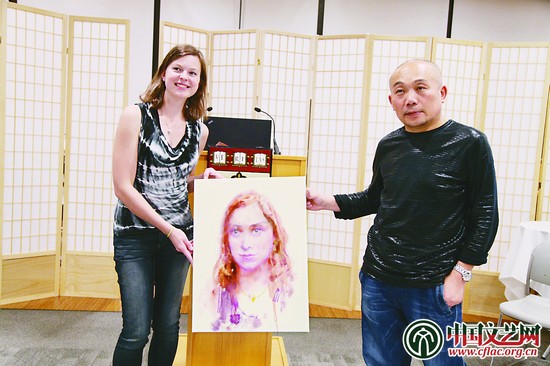 活動現場,哈佛大學教授Stephen Marks首先致歡迎辭,他非常感謝邢健健為哈佛師生帶來精美的藝術作品和精彩的講座,希望通過此次活動加強中美兩國大學間的文化藝術交流,加深兩國人民之間的友誼。隨后,邢健健為哈佛大學師生做了以中國油畫的時代審美和如何欣賞油畫作品為主題的講座,他用樸實簡練的語言講解了東西方文化藝術在體現真善美的共性和各自的特征,深入淺出、通俗易懂的語言讓大家感受到藝術之美和中華文化的博大精深,反響熱烈,引起陣陣掌聲。活動的另一亮點是他現場為哈佛大學學生Slawa Rokicki寫生人物肖像,邢健健用簡潔的筆法把肖像畫得惟妙惟肖,生動傳神,再次引來陣陣掌聲,活動結束后,哈佛大學的學子們為答謝邢健健,還表演了精彩的文藝節目。