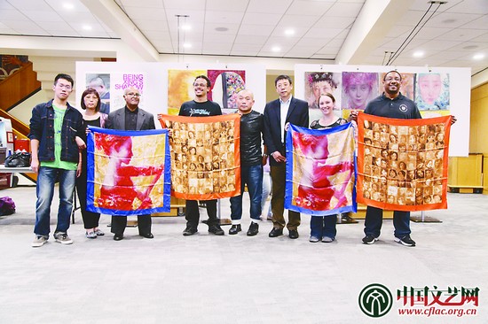 哈佛大學教授馬晶(左二)、甄曉光(左四)、助理張鐘文(左一),美國中國文化藝術基金會主席朱瑞凱(右二),南京藝術學院教授、著名油畫家邢健健(左三),金泓文化(美國)發展有限公司總裁、中國國家畫院海外推廣辦公室主任翟優(右一)合影