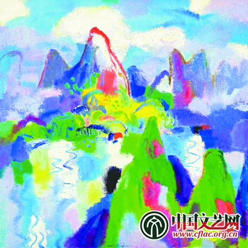 山林云水圖系列—日映嵐光輕鎖翠(油畫) 120×120cm 陳鈞德