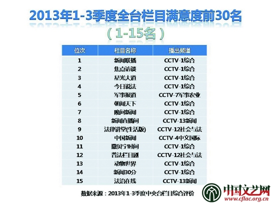 ◎央視一套《新聞聯(lián)播》在本次發(fā)布的最滿意電視節(jié)目總排名第一,“你幸福嗎”“航母style”“尋人啟事”等等,都是《新聞聯(lián)播》的看點(diǎn)和亮點(diǎn)。近年來(lái),以《新聞聯(lián)播》為代表的央視時(shí)政新聞,實(shí)際上是在不斷傳達(dá)出一個(gè)非常強(qiáng)烈的信息,那就是無(wú)論是中國(guó)夢(mèng),還是和諧社會(huì),都應(yīng)有一個(gè)非常生動(dòng)的電視呈現(xiàn)。