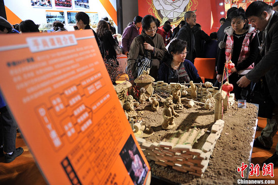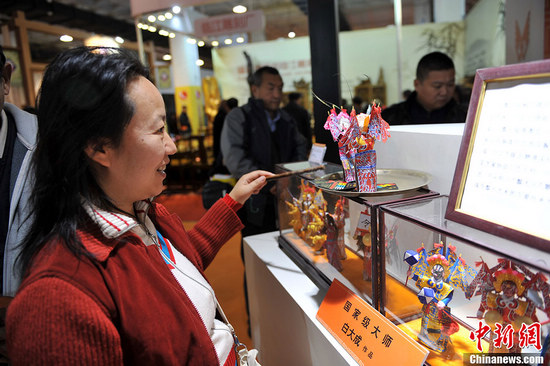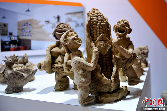 11月7日,第八屆北京文博會在北京國際展覽中心正式開幕。本屆文博會以“促進(jìn)文化貿(mào)易 加快經(jīng)濟(jì)升級”為主題,安排了六大系列100余場活動,設(shè)置16個主題展區(qū),1800多家來自國內(nèi)外的文化創(chuàng)意企業(yè)參展。圖為泥塑人物。中新網(wǎng)記者 金碩 攝
