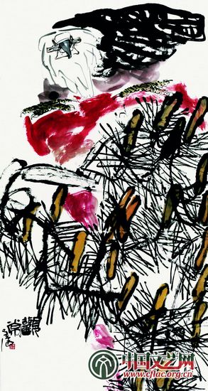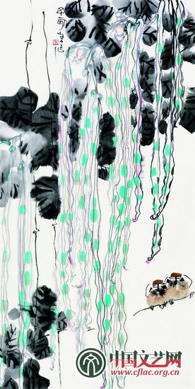 刁呈健先生寫意畫的創(chuàng)新是全面的,有現(xiàn)代構(gòu)成主義介入的構(gòu)圖,精彩的色彩駕馭,功能發(fā)揮到極致的線條和可讀的、可溝通的變體造型。他主體強(qiáng)大的功能完全能為他所描繪的客觀世界進(jìn)行強(qiáng)有力的改造和提升,最后用筆墨很自如地表達(dá)出來(lái),這對(duì)于一名藝術(shù)家是非常不容易的。