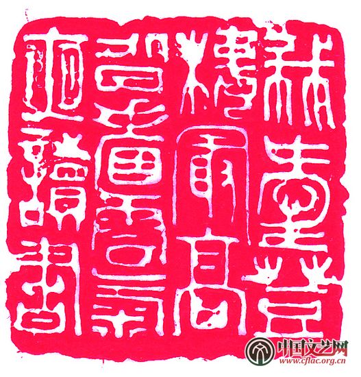 奏刀的同時(shí)我更加注重文字之間,排布、大與小、上下左右顧盼、向背、承應(yīng)、挪讓、交織,更加注重“點(diǎn)”的妙用,看中“留白”布置,留白得當(dāng)直接影響到整個(gè)印面的氣韻、意境,有助表達(dá)我內(nèi)心的“心象”世界。