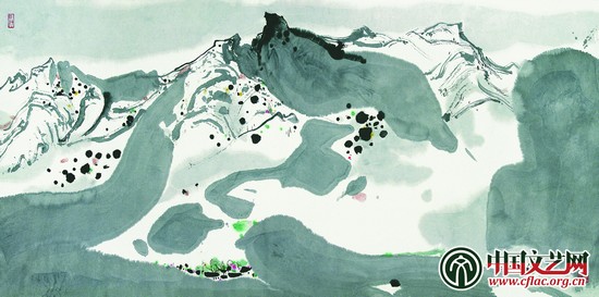 “詩意自然”部分則主要展示了中國當代藝術家關注自然題材的藝術作品。中國山水畫以自然山川為表現對象,與西方的油畫風景畫無論是在藝術觀念還是表現手法上都完全不同。中國畫家往往通過富有情致的筆墨表現山水意象,思考人與自然的關系,他們將自然理想化,并試圖在其中安置自己的心靈。這一部分以春天為主題的作品很多,如吳冠中的《春雪》、方向的《春雨》等。