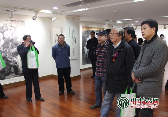 趙曼新年水墨展受到了美術(shù)界和廣大觀眾的極大關(guān)注,圖為孫克等嘉賓觀看展覽