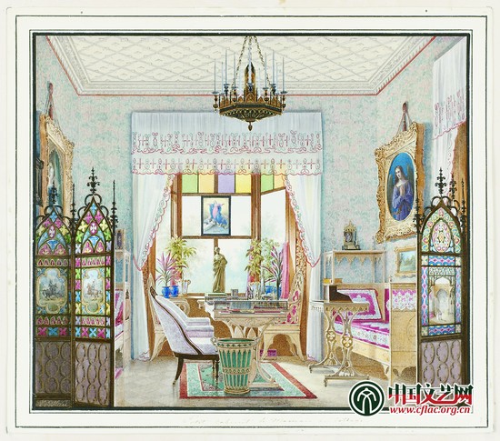小屋宮的亞歷山德拉·費奧多羅芙娜皇后的起居室(水彩畫)愛德華·彼得羅維奇·豪