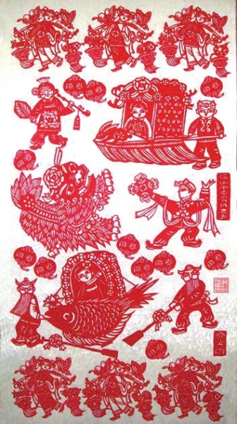 我國的剪紙藝術歷史悠久。唐宋時,剪紙業(yè)已十分發(fā)達。“漢妃抱娃窗前耍,巧剪桐葉照紗窗”形象生動地描寫了唐代人剪出的花鳥草蟲以及窗花的美麗造型。至明、清,更呈現出百花盛開之勢,形成了南方“纖細、清麗、婉約”、北方“粗獷、古樸、率真”的藝術風格。