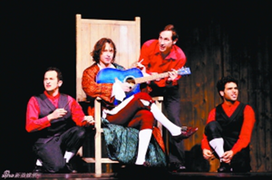 蓋謝爾劇院的這版《唐璜》,由以色列最當紅的偶像級演員薩沙·杰米多夫扮演,這位除了戲劇之外同時也是眾多電視電影作品主角的“男神”,無可匹敵的個人風采和揮灑自如的表演,令舞臺上下都為之一振。當他領著仆人斯卡那爾跑下舞臺,在首都劇場的觀眾席里穿梭來往,尋找美女時,大概不少女觀眾都在心里期待著他笑著點頭,用剛學的中文說道:“漂亮,漂亮!”
