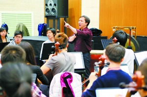 這樣一個排練現(xiàn)場很有意思,朱亦兵在單純技術(shù)上的指導(dǎo)并不多,一張嘴就是強烈的情感表達和看似驚世駭俗的理念,“我鄙視不用腦子的勞動!”“毛病是練出來的!”“勤奮是用來克服困難的,你有沒有想過困難是從哪來的?”“你們要像胸懷大志的野馬一樣渴望奔跑,誰靦腆我就滅掉誰!”對于朱亦兵的理念和表達風(fēng)格,跟隨他學(xué)琴三年的趙多嬌已經(jīng)很熟悉了,而且受益匪淺,讓她完成了與德國深造的順利對接,但是這幾天的排練依然讓她感覺太震撼了,也許是位置離朱亦兵比較近,趙多嬌真切地感受到了朱亦兵在指揮時傳遞出的能量,在這種氣場下,“一開始有些人會對朱老師的要求不適應(yīng),但現(xiàn)在當(dāng)每個音達到指揮要求時,拉琴者自己就會流露出陶醉的神情。”