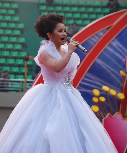 花腔女高音歌唱家吳碧霞在演唱歌曲《你來了》。(馬祥平 攝)