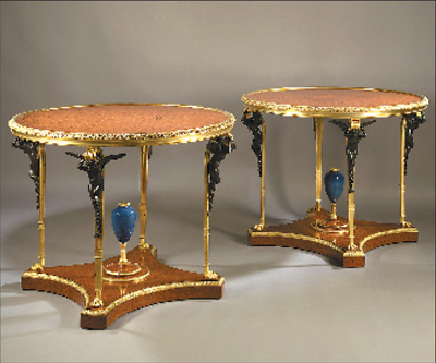 此次拍賣活動的拍品亮點頗多,古董家具方面有多款在法國古董家具歷史上具有代表性的人物弗朗索瓦·林科(Frankgois Linke)的作品,其中一對路易十六風格銅腿紫檀面圓桌(見圖二),簡潔大氣又不失華貴。鐘表拍品中有一件約1865年產自法國的三件式鐘表,均采用鎏金銅內填琺瑯的工藝制成,華麗而優雅。銀器也是本次拍賣中重要的組成部分,一件銀與玻璃完美結合的維多利亞時期擺件是其中的代表。本次拍賣的版畫作品中有多幅著名畫家的限量珍品。其中,現代藝術之父安迪·沃霍爾1981年在絲網彩印基礎上附鉆石粉工藝所作的《神話 米奇》(見圖一),巴勃羅·畢加索的《四裸女》、《坐著的女人》,馬克·夏加爾的《家庭的丑角》,以及薩爾瓦多·達利9張一組的版畫《風景九幅》等都是難得的藏品。