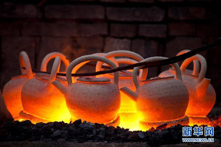 這是剛剛出窯的青砂器(2010年9月3日攝)。青砂器是河北省張家口市蔚縣的一種傳統(tǒng)手工藝制品,已有300多年的歷史。當地出產的砂鍋、砂壺、砂吊等器皿,以物美價廉、用途廣泛、性能特殊而久負盛名。青砂器是用當地人稱“甘子土”的原材料經過1400攝氏度高溫燒制而成的,這種土有砂性,細碾過濾后,細膩、柔軟、可塑性強,具有單一配方成型的特性。蔚縣砂器造型樸素大方、輕巧,通常比其他地方的砂器要薄,其制作過程精細,重工藝、重技巧、重火候。燒成的器皿呈藍灰色,愈用愈亮,具有煮食品、藥物不變質、不變色、不變味的特點。蔚縣生產青砂器歷史悠久,明清時期,皇宮里就用蔚縣砂壺,為皇上、大臣熬煎中藥。但是隨著社會的發(fā)展,這種砂器與現代各種器皿相比不夠美觀,市場需求越來越少,現僅存蔚縣南留莊鎮(zhèn)白河東村一兩家燒制青砂器的作坊,且出產量越來越少,這一傳統(tǒng)工藝面臨失傳的境遇。