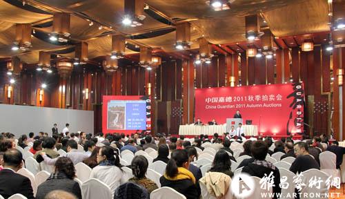 2011年11月14日下午16:00,中國嘉德2011秋拍“萬紫千紅總是春——新中國水墨探索之路”在北京國際飯店會議中心舉槌。經(jīng)過近3個小時的激烈競投,該專場成交額達(dá)2.26億元人民幣。其中李可染《丹霞楓林》以3680萬拔得全場頭籌。