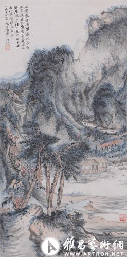 黃賓虹 陵陽山圖 設(shè)色紙本 立軸 89×35cm