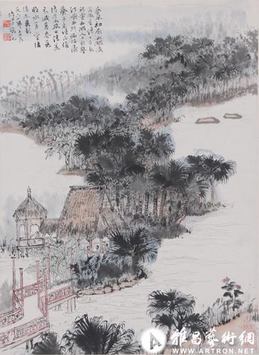 陸儼少 新會(huì)西湖 設(shè)色紙本 立軸 46×34cm