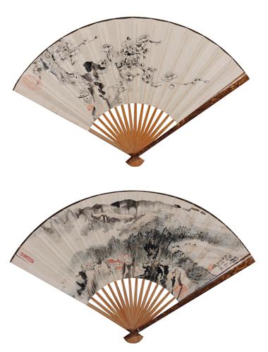 陸儼少 山村新貌 白梅成扇 設(shè)色紙本 成扇 18×49cm