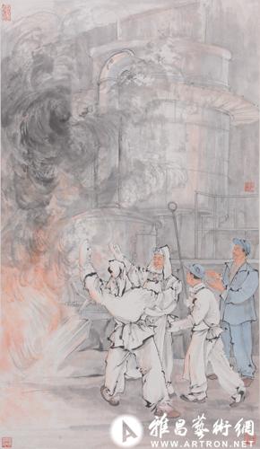 陸儼少 煉鋼工人 設(shè)色紙本 立軸 91×52cm