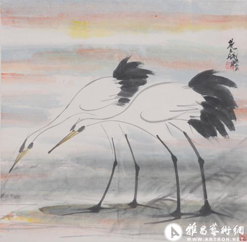 林風(fēng)眠 雙鷺圖 設(shè)色紙本 鏡心 68×68cm