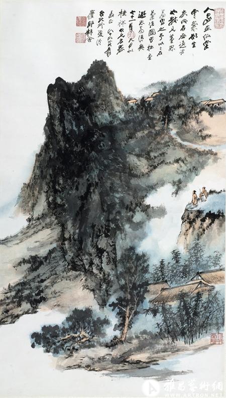 張大千 高士觀云 設色紙本 鏡框 104.5×59.5cm
