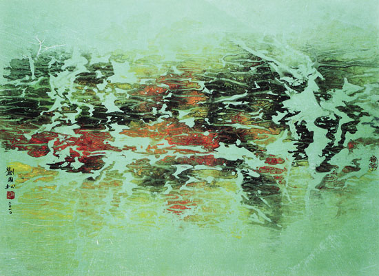 當(dāng)代名家中價(jià)位作品成為市場(chǎng)中堅(jiān)。劉國(guó)松的《孔雀池》(63.5cm×86.5cm)以69萬(wàn)元落槌翰海秋拍。