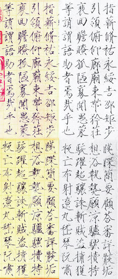 臨摹可以形似,而神擬絕不可能。早報記者昨天對比上海博物館藏《千字文》與此次拍賣的《千字文》,可以看到明顯的區別,對于上海博物館藏《千字文》,誠如書畫鑒定家楊仁愷先生所云:“其結體疏朗端正,下筆尖而重,行筆細而勁,撇捺出筆鋒而利,橫豎收筆頓而鈞,整體道麗瘦硬。”而拍賣的這件《千字文》,用筆浮滑輕飄,局促小氣,隨處可見,而轉折處交代不清,所有的捺都軟弱無比。