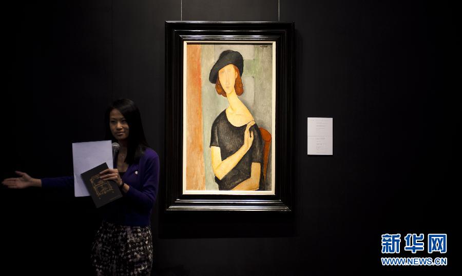 ??? 11月21日,工作人員介紹將于2013年2月6日在倫敦拍賣的亞美迪歐·莫迪利安尼作品《戴帽子的珍·伊布特》,該作品估價超過1.9億港幣。當日,佳士得拍賣行在香港會議展覽中心舉行海外拍場珍品預展。 (新華社記者 呂小煒 攝)