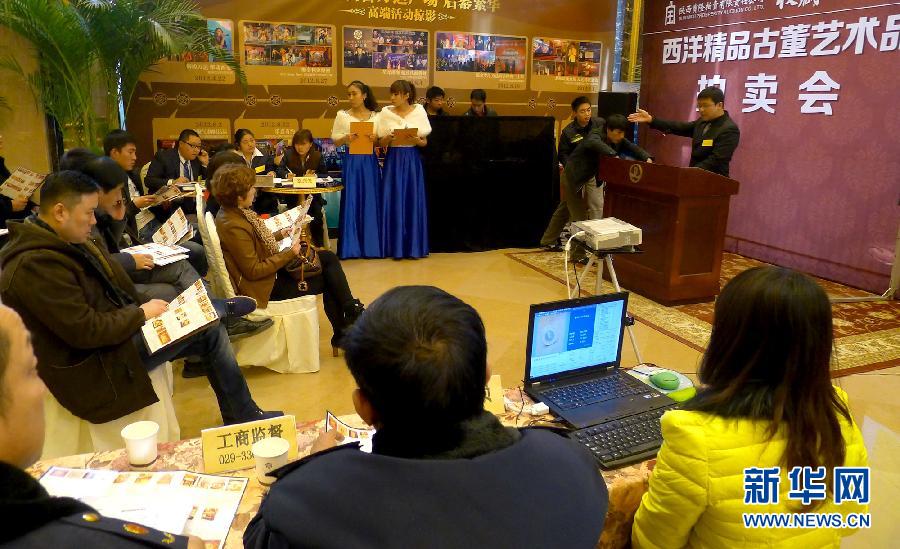 ??? 12月6日,陜西一家拍賣公司在西安舉辦中國西部首次西洋古董拍賣會。本次參拍的52件拍品,不少為歐洲皇室遺留珍品,給觀眾和中國收藏家留下深刻印象。(新華社記者 焦衛平 攝)