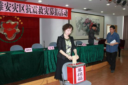 地震無情,人間有愛?!?·20”四川雅安發生7級地震,災情牽動著省文聯全體干部職工的心。4月23日上午,省文聯召開為雅安地區抗震救災募捐活動動員會,通報雅安地震災情,發起捐款動員。省文聯及各直屬單位干部職工積極響應號召,踴躍向災區受難群眾捐款。