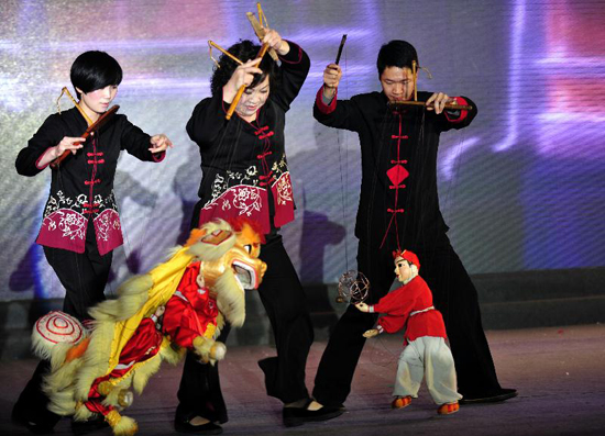 浙江省第四屆曲藝雜技魔術(shù)節(jié)優(yōu)秀作品獎和表演獎的平陽木偶戲《鬧花燈》
