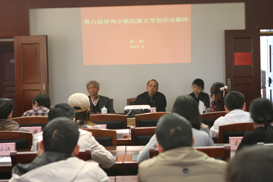 貴州文學(xué)院原常務(wù)副院長(zhǎng)、《貴州作家》主編苑坪玉就貴州少數(shù)民族作家具備的政策優(yōu)勢(shì)、獨(dú)特的思維優(yōu)勢(shì)、文化優(yōu)勢(shì)等作了講座。講座深入淺出,將理論與創(chuàng)作相結(jié)合、實(shí)踐與創(chuàng)作相比較,既有事實(shí)的闡述,又有理論的深化,擴(kuò)展了學(xué)員們的思維方式,鼓勵(lì)的學(xué)員們的創(chuàng)作自信。